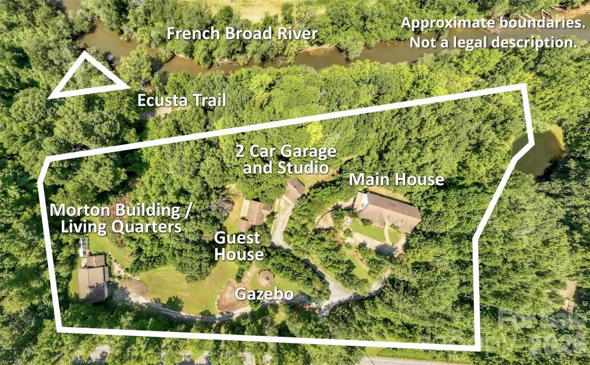 Unique Western North Carolina investment opportunity featuring a 6+ acre riverfront compound with four separate buildings and six distinct living spaces, offering exceptional flexibility for events, retreats, short-term rentals, or multi-unit income. Ideally located between Hendersonville and Brevard, the property offers direct access to the French Broad River and connects to the popular Ecusta Trail, creating a rare combination of recreation, tourism, and business potential. The main residence serves as the centerpiece of the property with expansive gathering areas and a full kitchen ideal for hosting events, retreats, or group accommodations. The lower level of the main building features a fully equipped second kitchen, two bedrooms, and a large living space that functions perfectly as a separate rental unit, guest suite, or additional lodging for retreat guests. A second home on the property includes two separate one-bedroom living units with private entrances—one on the main level and another on the lower level—offering excellent flexibility for short-term rentals, extended stay guests, or staff housing. The third house includes a kitchen, living room, dining room, porch area with one and a half baths. Also has an extra-large garage and workshop space that could easily be converted into an event hall, studio, or creative gathering space for weddings, workshops, or corporate retreats. Additional improvements include a detached two-car garage with a one bedroom efficiency apartment, providing yet another rental or caretaker option. Outdoor amenities make this property especially attractive for destination gatherings and hospitality uses. The grounds feature two scenic ponds, a large gazebo ideal for ceremonies or outdoor events, a water feature, and over six acres of usable land with river access. The connection to the Ecusta Trail adds tremendous appeal for cyclists, outdoor enthusiasts, and visitors exploring the growing recreation corridor between Hendersonville and Brevard. With multiple structures, numerous lodging options, beautiful natural features, and no HOA restrictions, this property offers exceptional potential as a boutique event venue, retreat center, income-producing short-term rental compound, or private estate. All buildings currently use city water, but there is a well on the property.