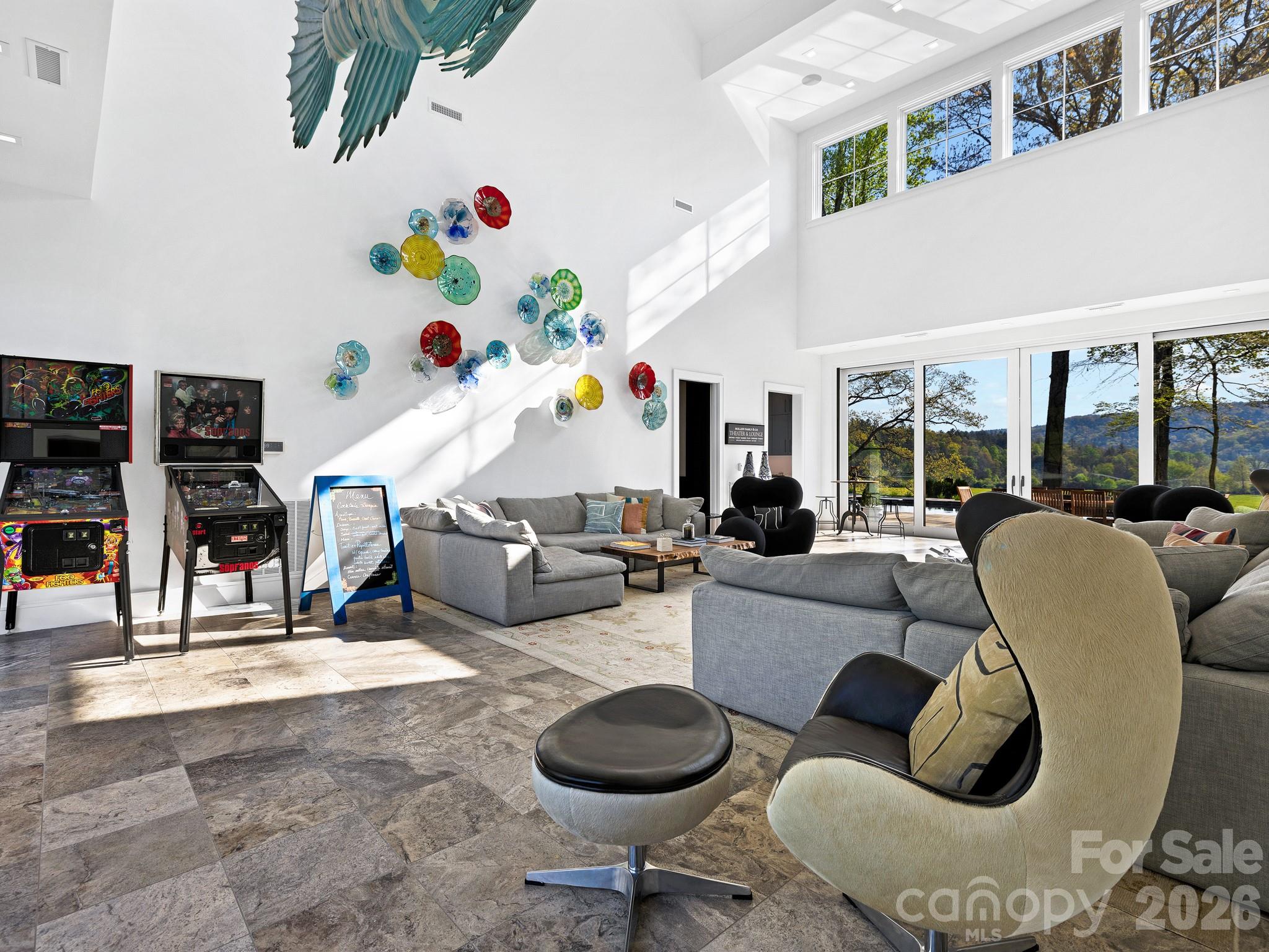 Blue Fish Farm is one of the most significant legacy offerings in the Blue Ridge Mountains, an extraordinary 160-plus-acre riverfront estate in Brevard, where privacy, scale and natural beauty converge along more than a mile of the French Broad River. Just minutes from Pisgah National Forest, DuPont State Forest and the region’s iconic waterfalls, this is a rare opportunity to own an irreplaceable Western North Carolina retreat. Originally designed by Platt Architects, the estate reflects a timeless mountain-modern aesthetic, blending refined craftsmanship with materials that echo the surrounding landscape. Across more than 12,700 square feet of combined living space, the property unfolds as a curated collection of residences, including a primary home, two guest cottages and a pool house, each thoughtfully positioned to capture river, pasture and mountain views. The main residence is warm, sophisticated and deeply connected to its setting, featuring heart pine flooring, natural bluestone, custom millwork and expansive windows that frame the landscape in every direction. Open-concept living spaces transition seamlessly to covered porches and outdoor entertaining areas, creating an effortless indoor-outdoor lifestyle synonymous with luxury mountain living. A series of guest residences provides exceptional flexibility for multi-generational living, private retreats or luxury rental potential. The Treehouse offers an intimate escape tucked into mature forest canopy, while The Hideaway delivers generous scale and privacy. The Pool House elevates the experience further with a full kitchen, fitness area, home theater, and direct access to a heated pool and tennis court, designed for relaxation and recreation. The land itself is the defining feature, over 160 acres of rolling pasture, hardwood forest, and curated grounds with three spring-fed ponds, an established trail system and expansive river frontage ideal for fly fishing, kayaking, and exploration. Whether envisioned as a private family compound, equestrian estate, working farm or corporate retreat, the possibilities are as expansive as the property itself. Despite its remarkable seclusion, Blue Fish Farm is less than 10 minutes from downtown Brevard’s vibrant dining, breweries and boutique shopping, and within easy reach of Hendersonville, Asheville Regional Airport and Asheville’s renowned cultural scene. Lake Toxaway and its private club amenities are also nearby, offering an added layer of lifestyle appeal. Blue Fish Farm is more than a property, it is a generational estate, a French Broad River sanctuary and a rare convergence of luxury, land and legacy in one of North Carolina’s sought-after mountain destinations.